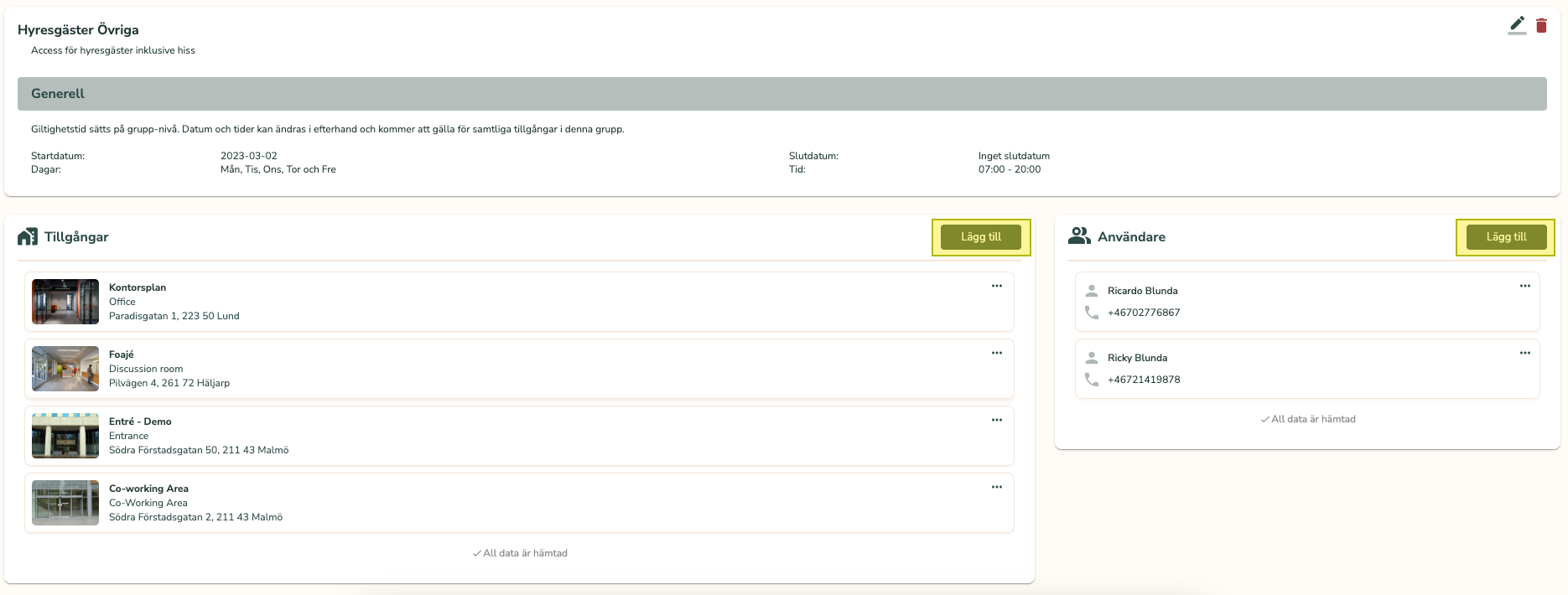Du kan ändra giltighetstider samt lägga till och ta bort användare i en redan befintlig accessgrupp.