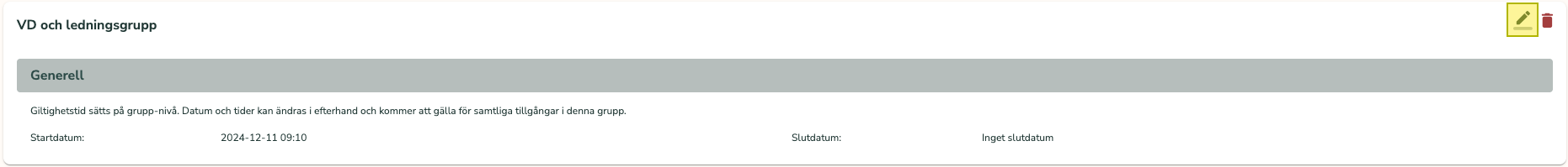 Klicka på "pennan" i över höger hörn för att redigera giltighetstiden för gruppen: